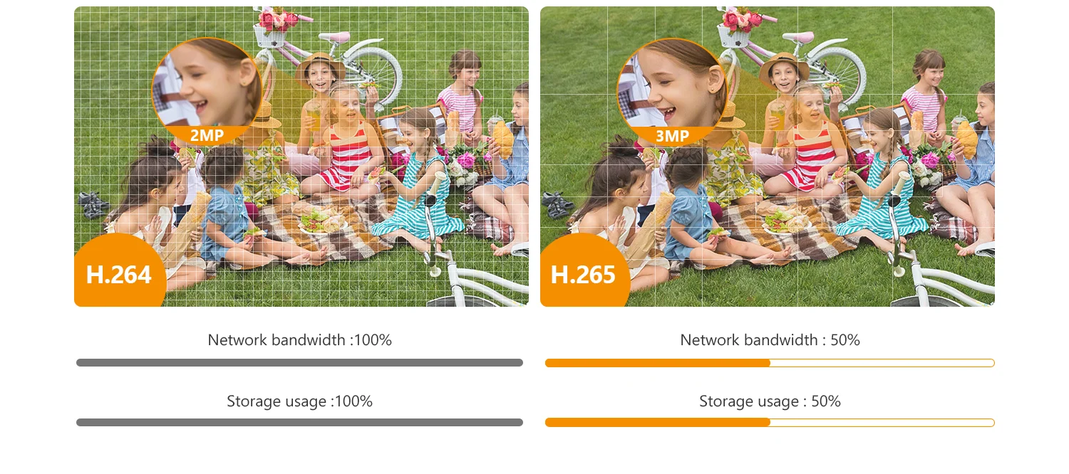 Up to 3MP Image & H.265 Compression(H.264 compatible)