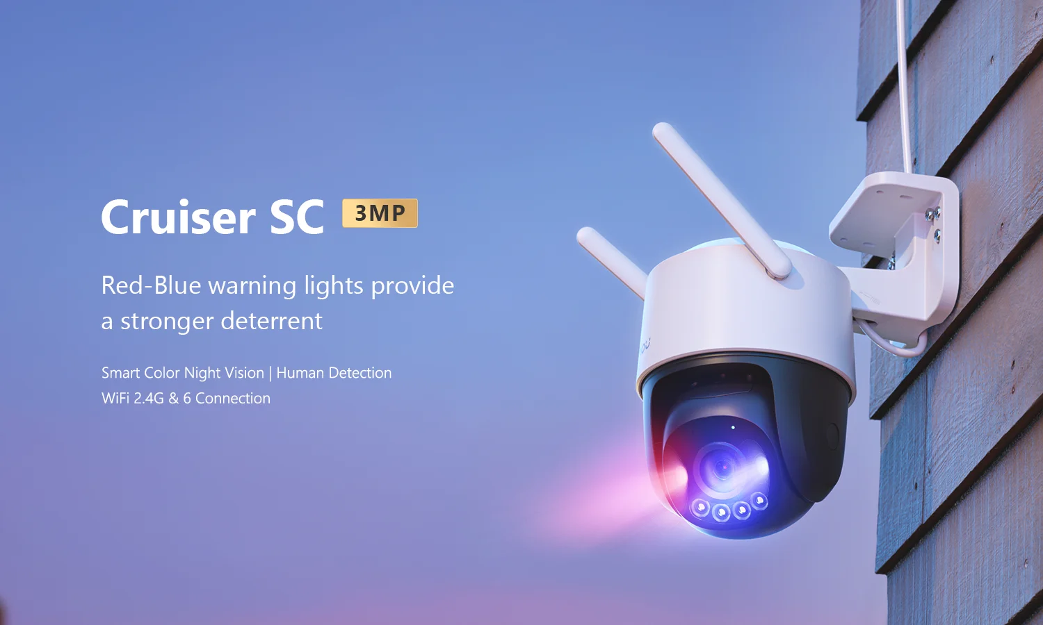3MP H.265 Video | Red-Blue Warning Lights | Privacy Mode | Human DetectionTwo-way Talk | Smart Color Night Vision | Smart Tracking | Alarm Notification
